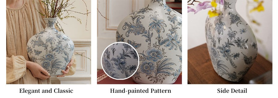 Hand-painted pattern&Uniqueness - Blue and White Vase is a classic decoration for Home. Pure hand-painted pattern, exquisite detail painting and the patterns are hand-painted, and there are differences in each.