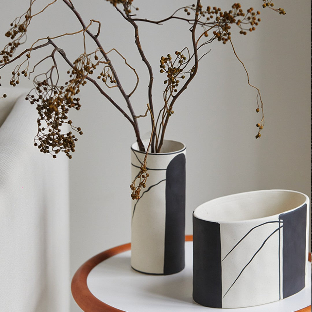 Handmade - this ink vase is hand-kneaded, pure hand-painted oriental chiaroscuro blossomed in the bottle, using sensual nature's beautiful lines, ink and line stretching, with the lines of abstract ink, expresses nature's music - like rhythms and the corresponding psychological feelings; smooth ripple texture on the surface, elegant and classic shape of the vessel, which can be used as a Collectible art ornament;