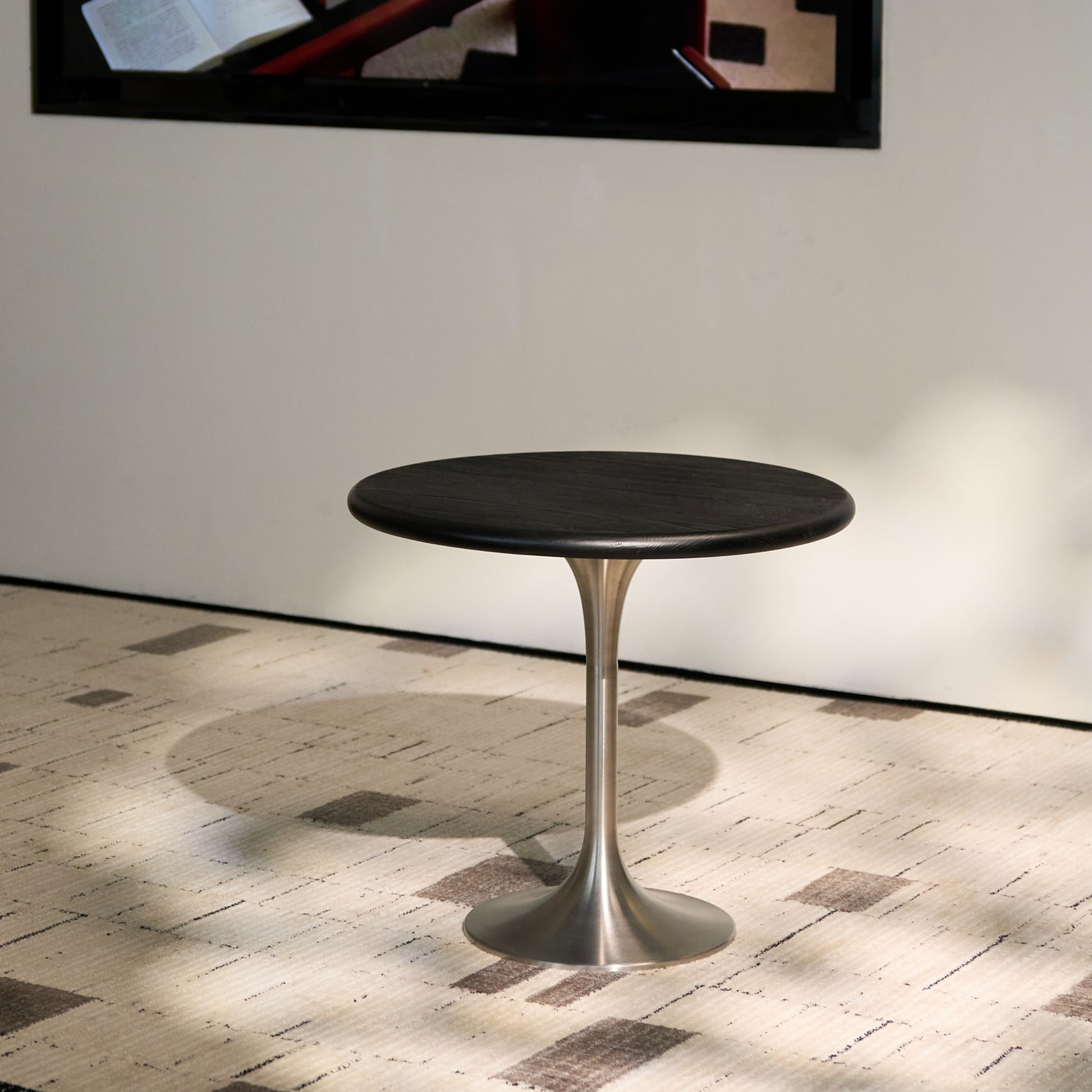 Quality material to create: ash wood with black open wood grain paint process, restore the natural texture of the wood grain feel silky smooth, with stainless steel base, design and antique texture and coexist; stainless steel feet using brushed process, delicate and shiny, durable and durable, such as the moon in the air as striking, become the eye-catching home space;